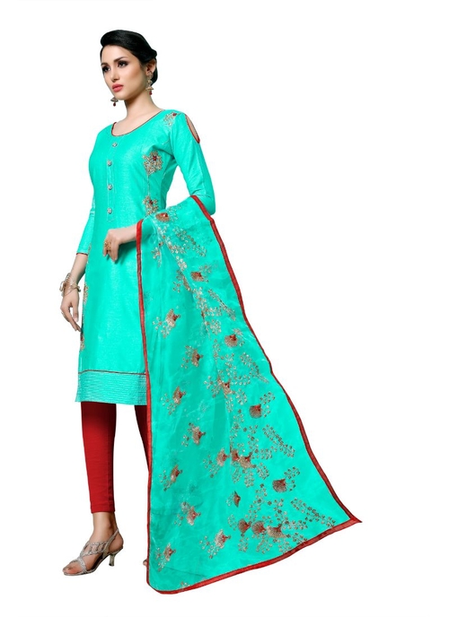 Generic Women's Jam Cotton Salwar Material (Turquoise, 2-2.5mtrs).