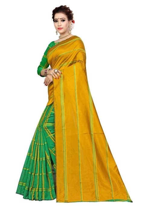 Generic Women's Polyester Cotton Saree with Blouse (Multi, 5-6 Mtrs).
