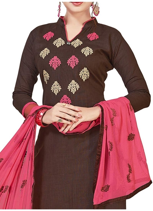 Generic Women's Slub Cotton Salwar Material (Brown, 2 Mtr).