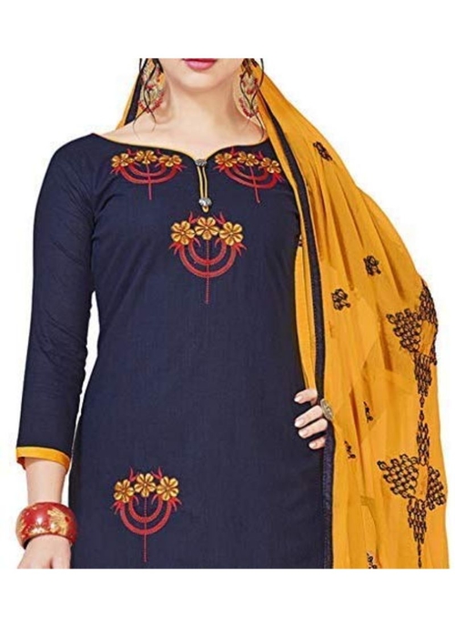 Generic Women's Slub Cotton Salwar Material (Navy Blue, 2 Mtr).