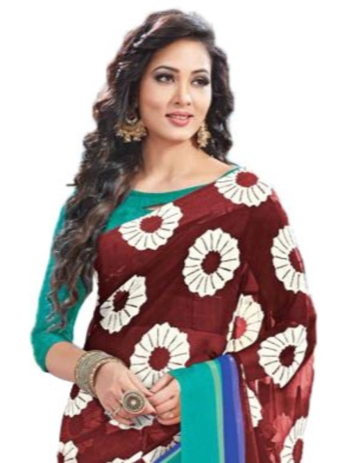 Georgette Digital Saree With Blouse-Brown. Don't Change to fit the fashion change the Fashion to fit you. Color : Brown, Size : 6.25 Mtr, Material : Geogrette Saree with Blouse