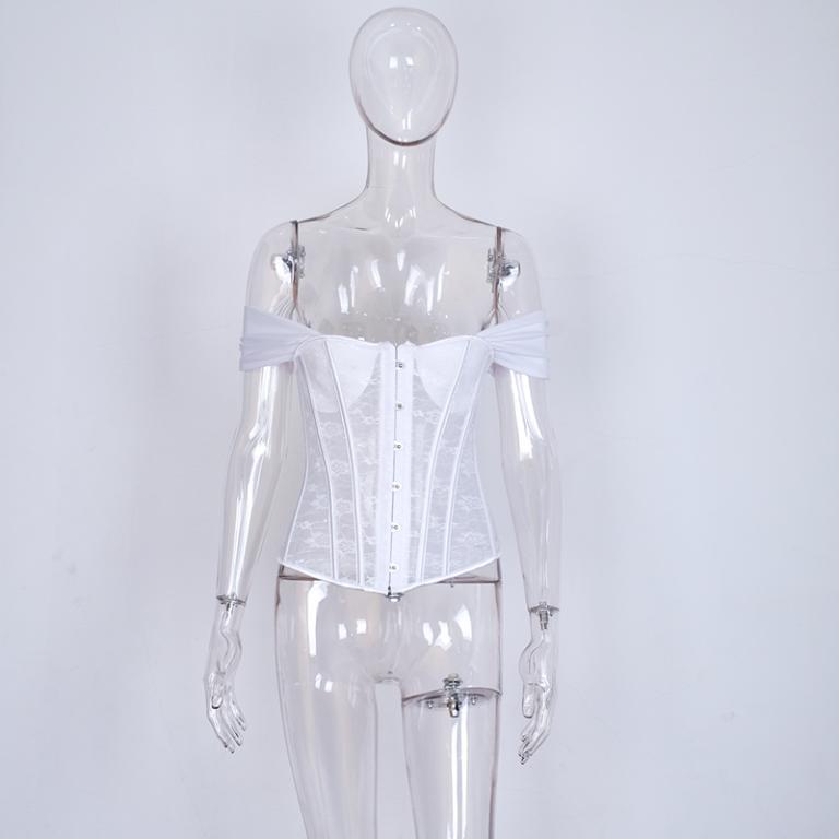 Glamaker Elegant Off Shoulder Vintage Blouse featuring lace decoration and short sleeves, perfect for stylish women.