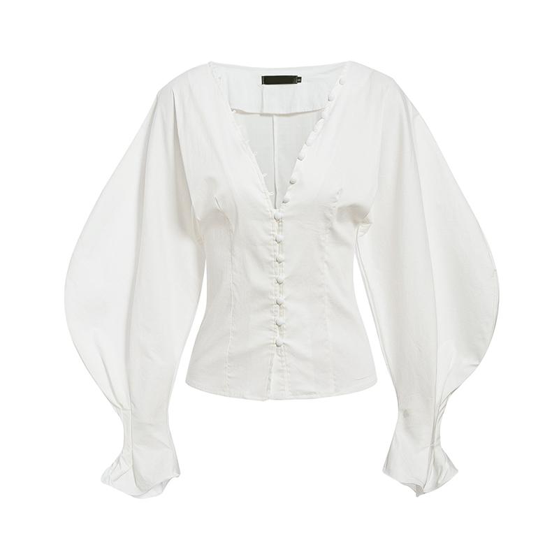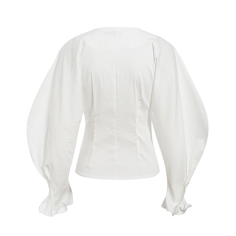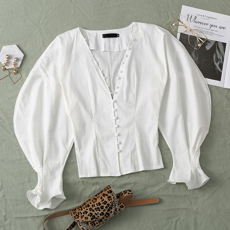 This blouse features a trendy V-neck collar that adds a touch of elegance to your outfit. The full batwing sleeves create a relaxed silhouette, allowing for a chic and modern look. The solid pattern makes it easy to pair with various bottoms, from jeans to skirts, making it a versatile addition to your wardrobe.