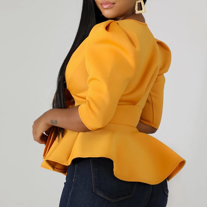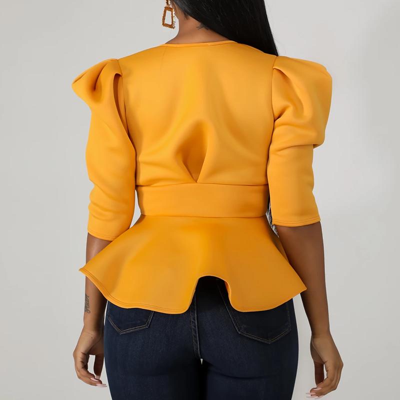 This blouse is designed for women who appreciate both style and comfort. Whether you're heading to a party, a dinner date, or a casual day out, the Glamaker Ruffles V Neck Blouse is the perfect choice. Its solid pattern allows for easy mixing and matching with your favorite accessories and bottoms, making it a versatile piece in your wardrobe.