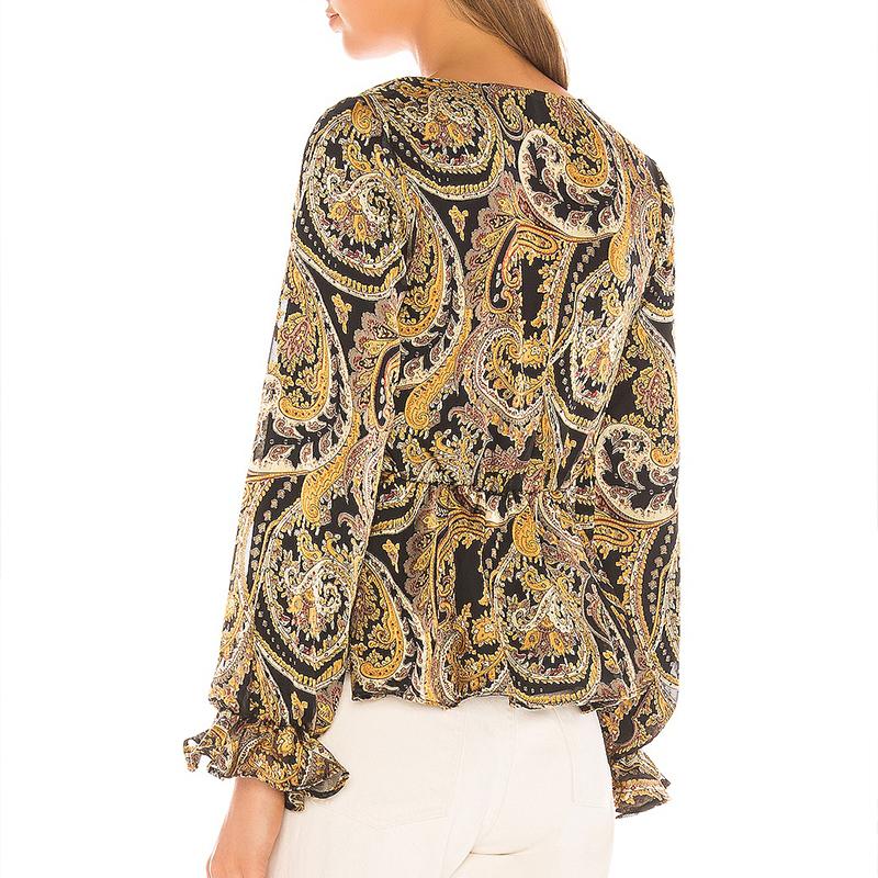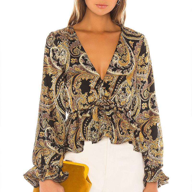 This sexy and club-style blouse is perfect for a variety of occasions. Pair it with a sleek pencil skirt for a sophisticated office look, or wear it with your favorite denim for a laid-back weekend outfit. The paisley print and ruffles make it a versatile piece that can transition from day to night effortlessly.