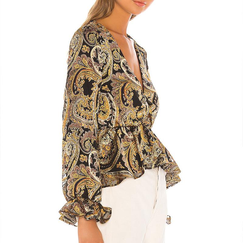Don't miss out on the opportunity to own this stylish and versatile blouse. Add the Glamaker Sexy Paisley Print High Waist Ruffles Blouse Shirt to your collection today and elevate your fashion game!