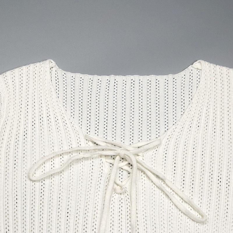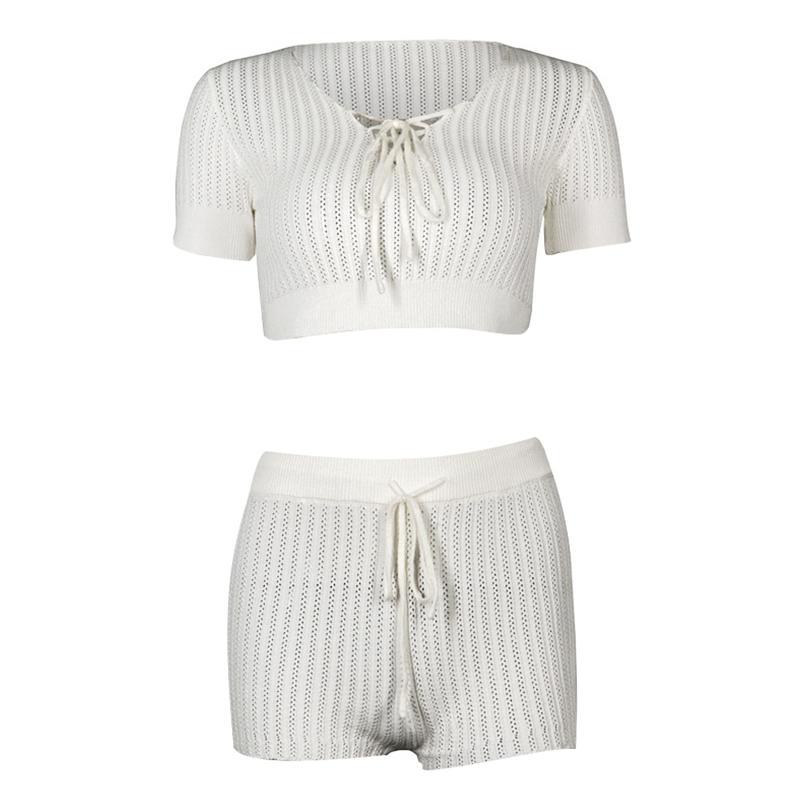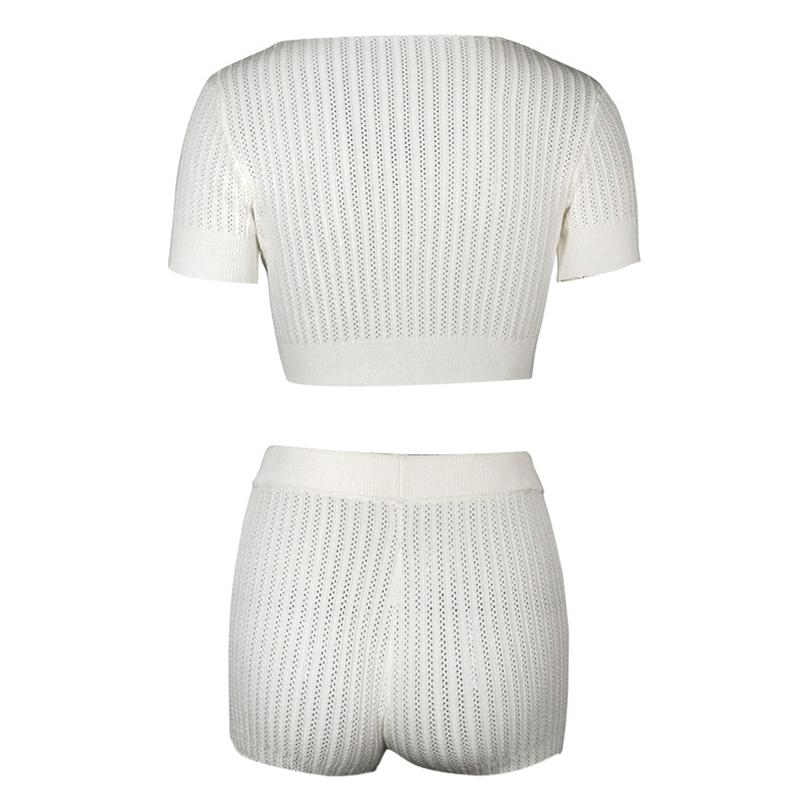 In summary, the Glamaker Sexy Short Sleeve White Knitted Jumpsuit is a stylish and versatile addition to any wardrobe. With its unique design, comfortable fit, and high-quality materials, it is sure to become a favorite for any occasion.