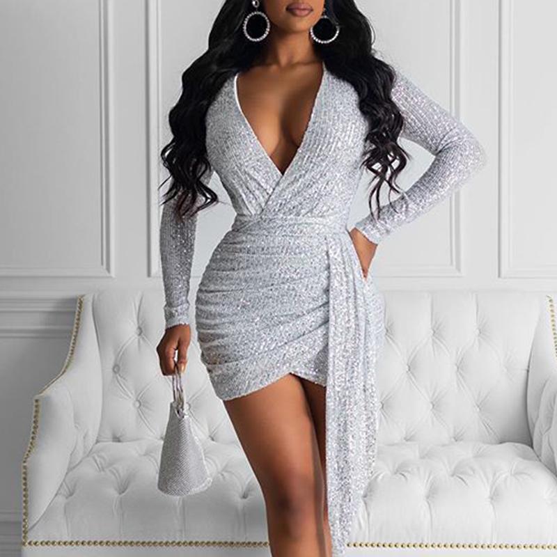 With a chic V-neckline, this dress offers a sophisticated yet alluring appeal. The full sleeves provide coverage while still maintaining a sexy vibe, making it suitable for cooler autumn and winter evenings. The combination of the neckline and sleeve length creates a balanced look that is both elegant and trendy.