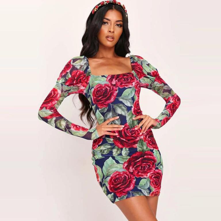 Introducing the Glamaker Vintage High Waist Floral Print Bodycon Dress, a stunning addition to any woman's wardrobe. This elegant dress is designed to enhance your silhouette while providing comfort and style. Made from high-quality Lanon material, it is perfect for the spring season, allowing you to stay fashionable while enjoying the warmer weather.