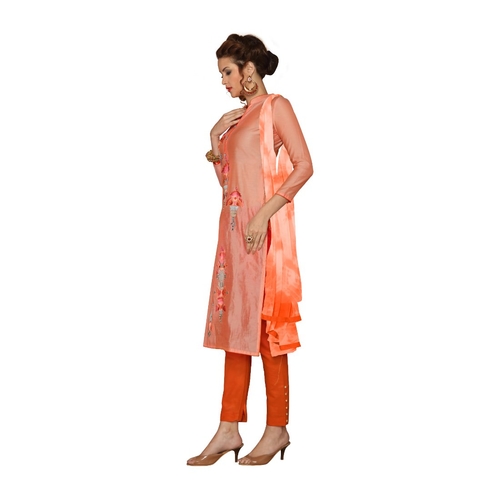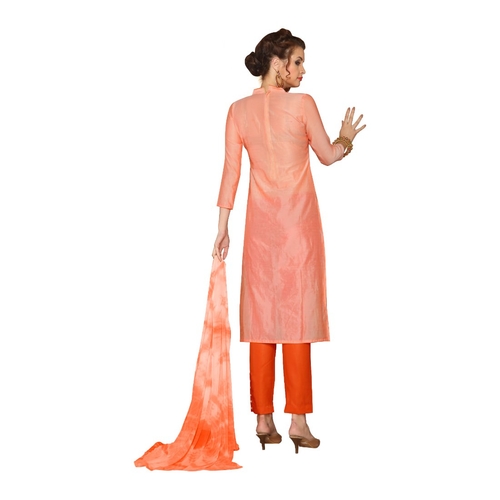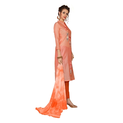 Glaze Cotton Fabric Peach Color Dress Material Material : Glaze Cotton Waist Fabric: Cotton Dupatta Fabric : Nazmeen Color : Peach Size : 2.3 Mtrs Bottom Width : 2.2 Mtrs Duppata Width :2 Mtrs