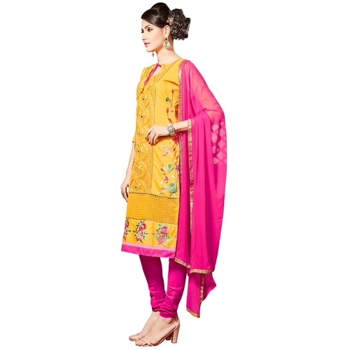 Glaze Cotton Fabric Yellow  Color Dress Material