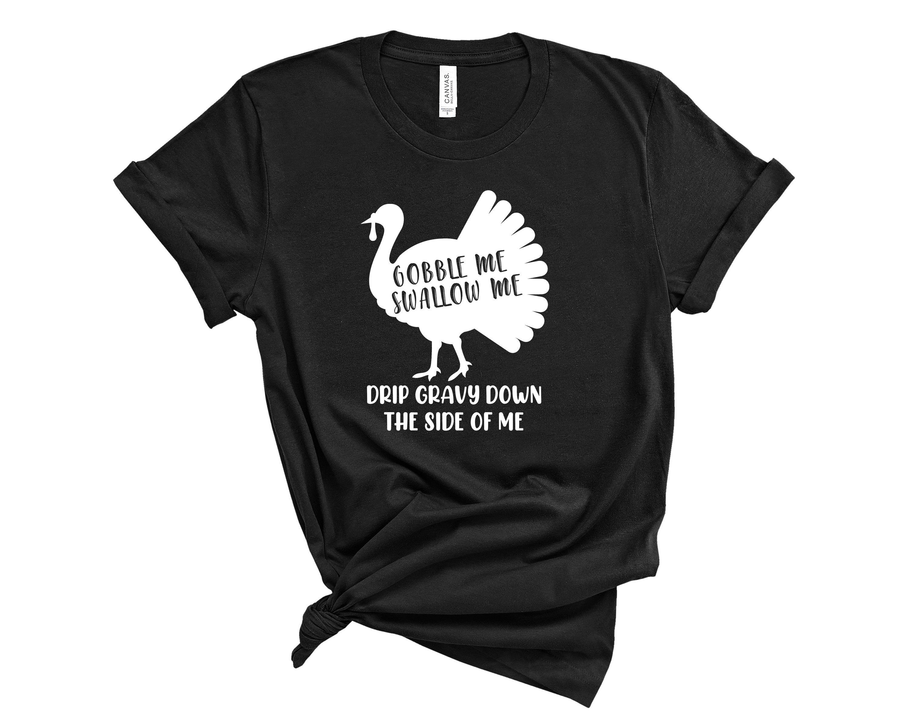 Whether you're attending a casual gathering, a party, or just enjoying a day out, the Gobble Me Swallow Me Tee is the perfect choice. Its unique design makes it a great conversation starter, while its comfortable fit ensures you can wear it all day long. Dress it up with accessories or keep it simple; this tee is versatile enough to suit any style.