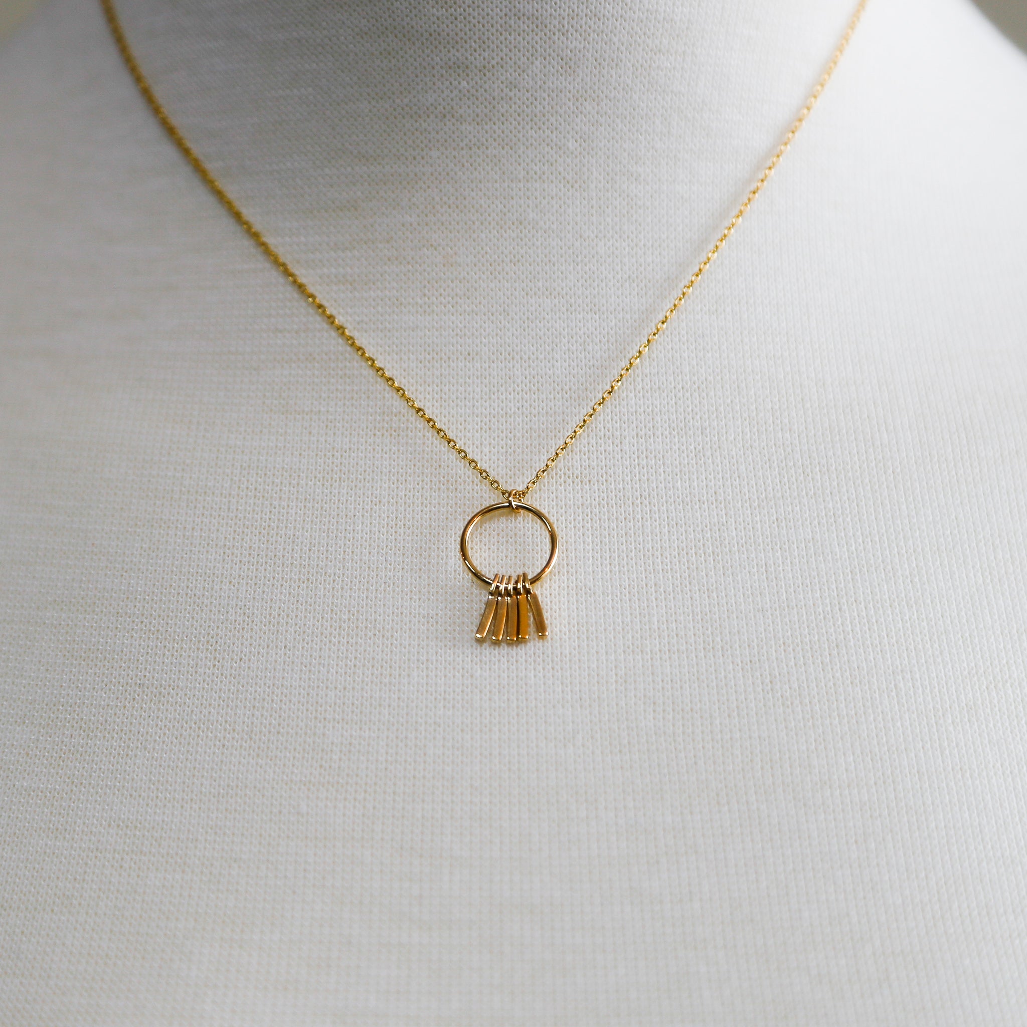 Crafted with meticulous attention to detail, the Golden Wind Chimes Pendant Necklace showcases a delicate cable chain that complements the pendant perfectly. The chain measures 16 inches in length, making it ideal for layering with other necklaces or wearing alone for a minimalist look. The pendant itself measures 1 inch, striking the perfect balance between subtlety and statement.
