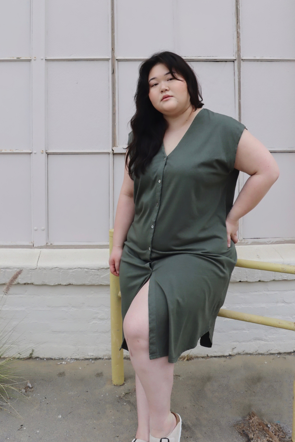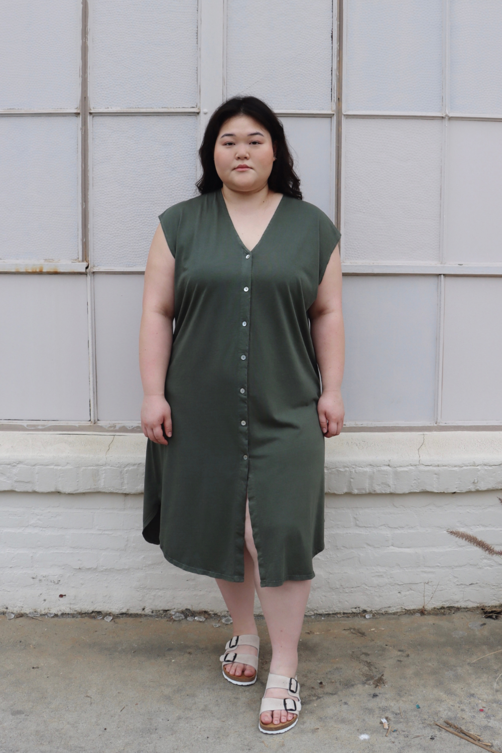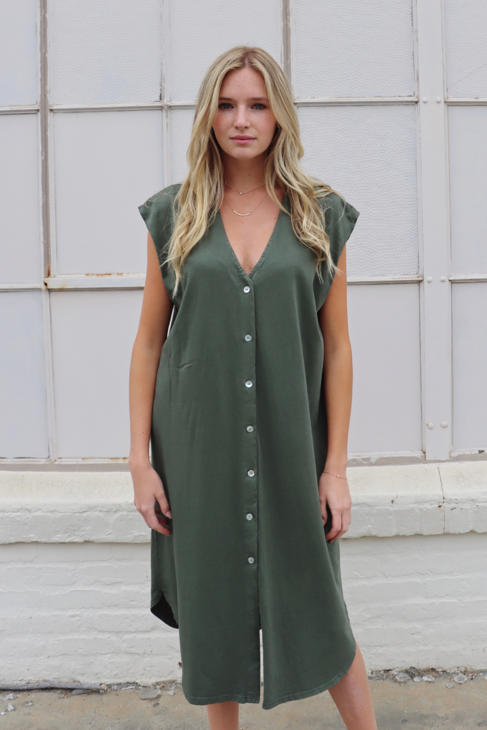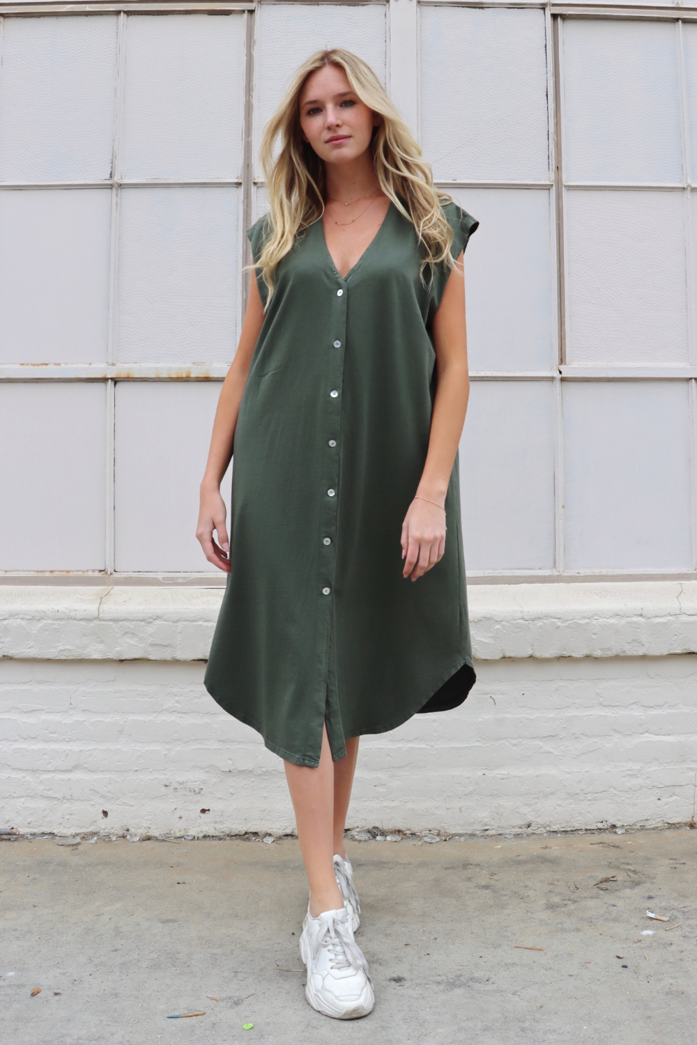 The Grace Dress is the epitome of style and comfort, designed for the modern woman who values versatility in her wardrobe. This stunning button-up midi length dress flows beautifully, making it an ideal choice for various occasions, whether you're heading to the office, visiting the farmers market, or embarking on a weekend road trip. Crafted from 100% organic cotton, this dress not only feels great against your skin but also aligns with eco-friendly values.
