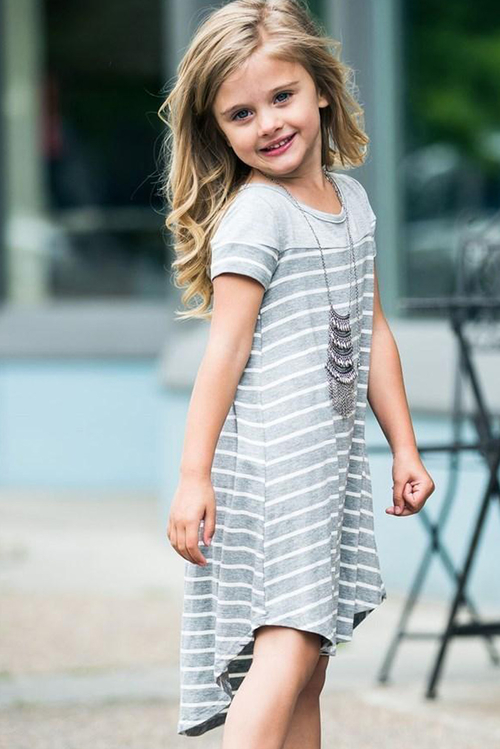 •This girls’ dress has a round neck, short sleeves and comfy fit shape