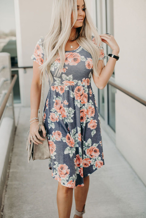 •This lightweight dress is cut with a crew neck and short sleeves