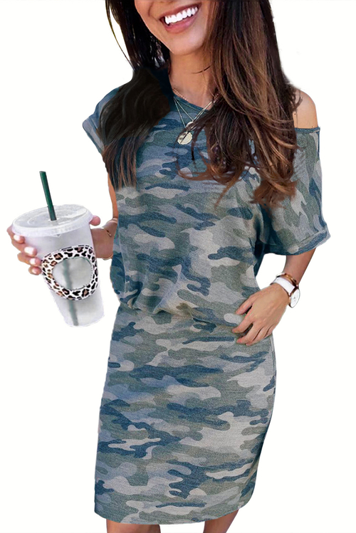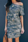 Dropship Gray One Shoulder Short Sleeve Camo Mini Dress
