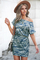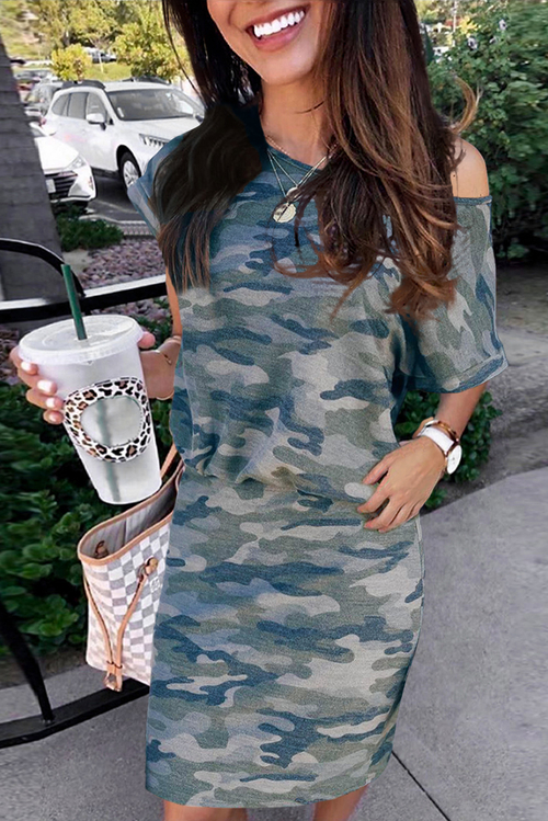 Gray One Shoulder Short Sleeve Camo Mini Dress