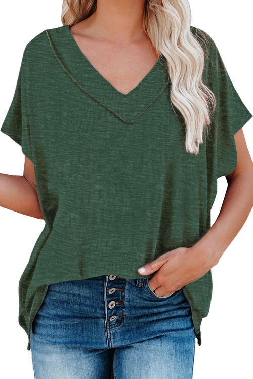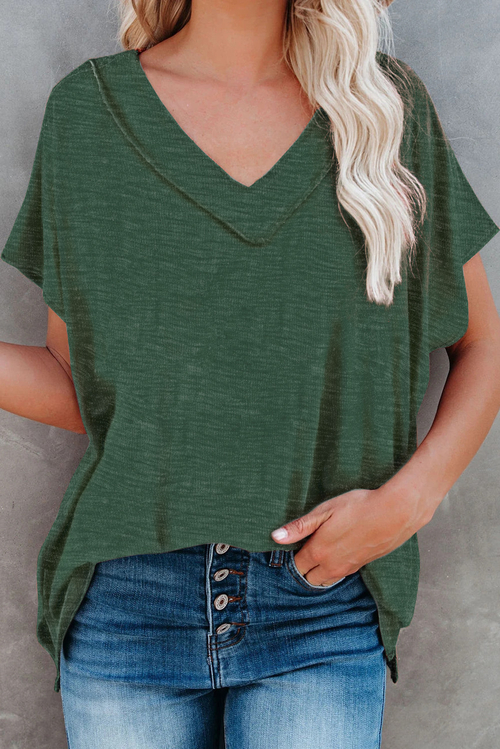 Dropship Green Oversized Mineral Wash Cotton Blend V Neck Short Sleeves Top