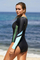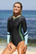 Dropship Green Sport Sculpt Long Sleeve Zip Front Rashguard Swimsuit