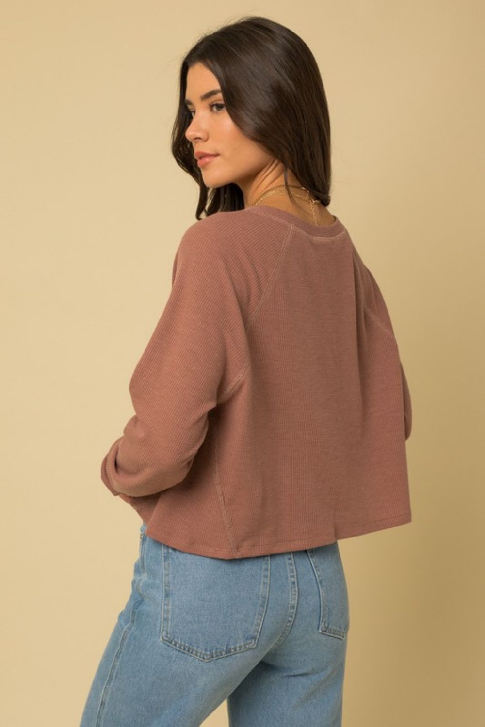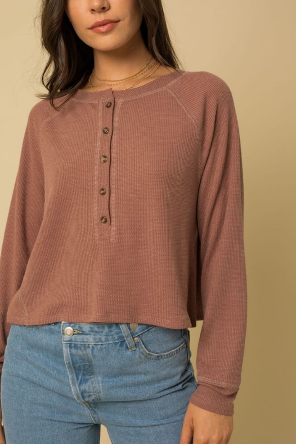 Maintaining the Half-Button Long Raglan Sleeve Top is a breeze. Simply machine wash it in cold water and tumble dry on low. This easy care feature makes it a practical choice for busy individuals who want to look good without the hassle of complicated laundry routines.