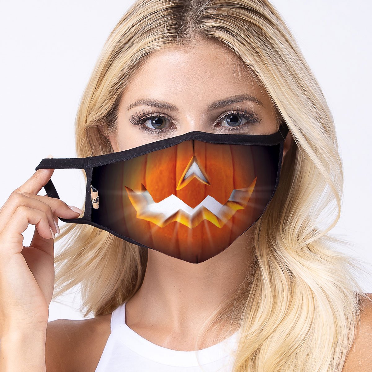 Get ready for Halloween with our Halloween Pumpkin 3-Layered Face Cover (PM0262). This stylish and protective face mask is designed to keep you safe while showcasing your festive spirit. Made with a durable polyester exterior and a dual-layer cotton interior, this mask offers both comfort and protection. The unique pumpkin print design adds a fun touch to your Halloween attire, making it perfect for parties, trick-or-treating, or any festive gathering.