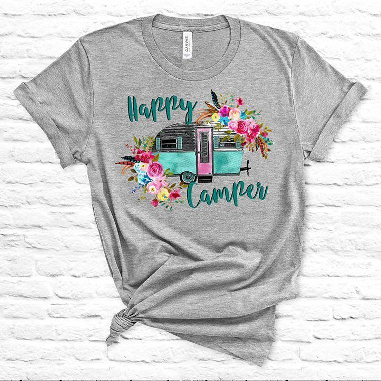 To keep your Happy Camper Vintage Camping Tee looking its best, we recommend machine washing it in cold water and tumble drying on low. Avoid using bleach or harsh detergents to preserve the vibrant colors and print. With proper care, this tee will remain a staple in your wardrobe for years to come.