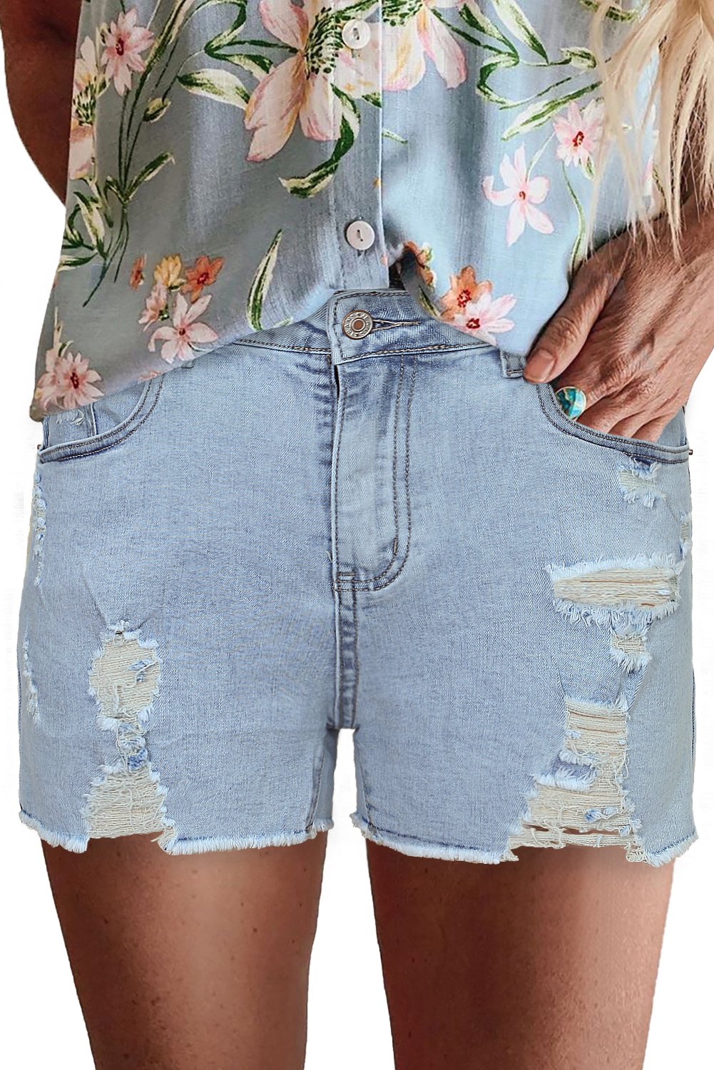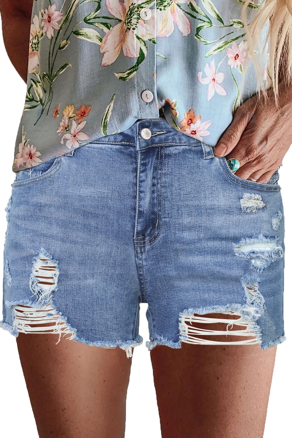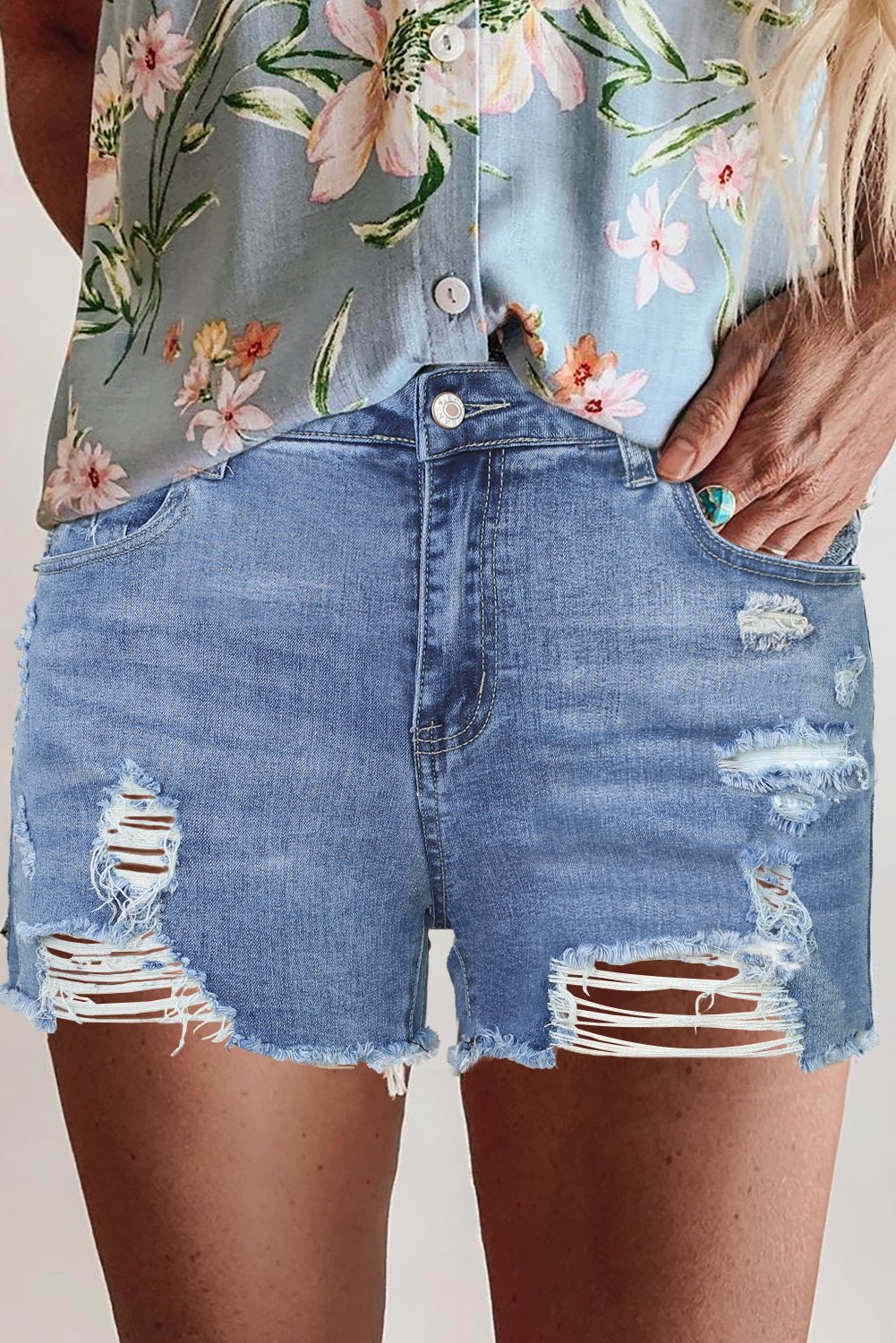 One of the standout features of our High Rise Destroyed Denim Shorts is their ability to showcase your legs beautifully. The cut of the shorts is designed to elongate your legs, giving you a confident and stylish appearance. Whether you have long legs or not, these shorts will help you feel fabulous and ready to take on the day.