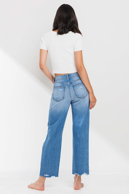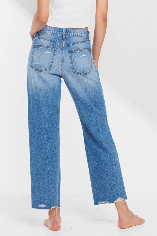 Introducing our High Rise Straight Leg Ankle Jeans with Raw Hem, a must-have addition to your wardrobe. These jeans are designed to offer both style and comfort, making them perfect for any occasion. With a flattering high rise and a straight leg silhouette, they provide a modern look that pairs well with various tops and footwear.