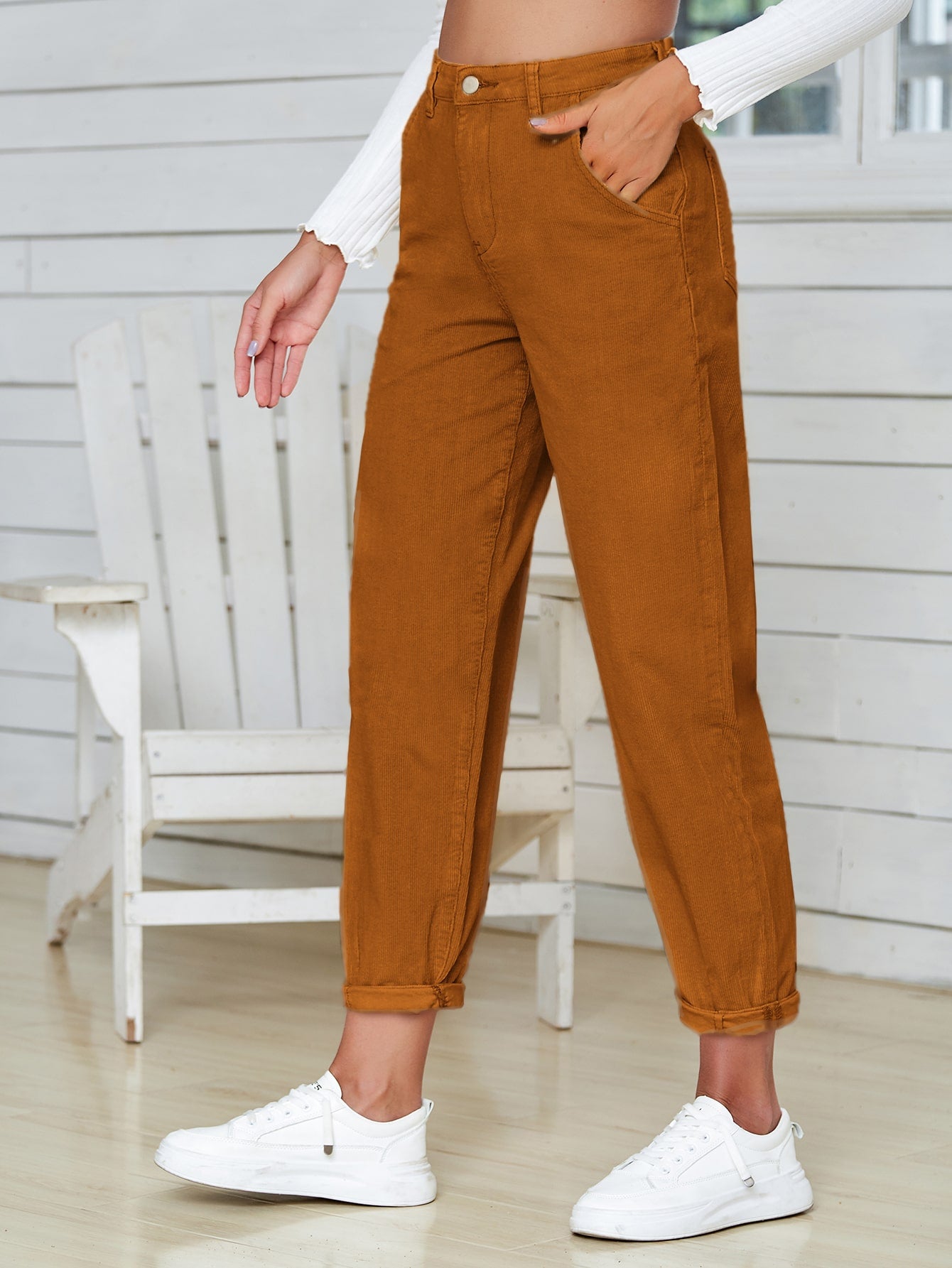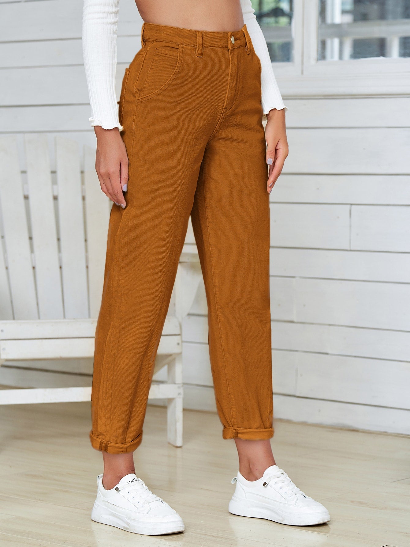 The High Waist Pocketed Straight Leg Jeans can be styled in numerous ways. Pair them with a fitted top and ankle boots for a chic look, or wear them with a loose sweater and sneakers for a more relaxed vibe. Accessorize with statement jewelry or a stylish handbag to elevate your outfit further.