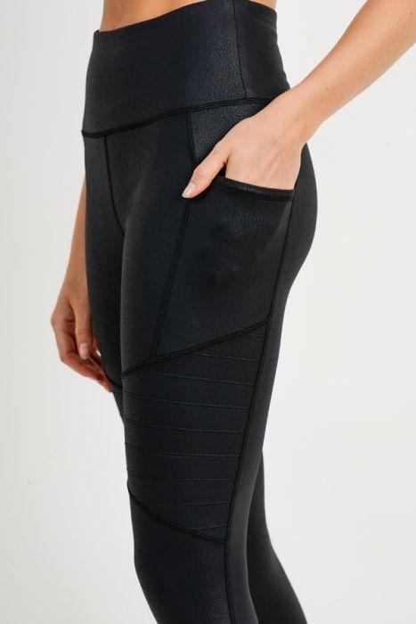 These Highwaist Foil Moto Pocket Leggings are incredibly versatile. Dress them up with a stylish top and accessories for a night out, or keep it casual with a simple tee. They are perfect for any occasion, making them a must-have in your wardrobe.