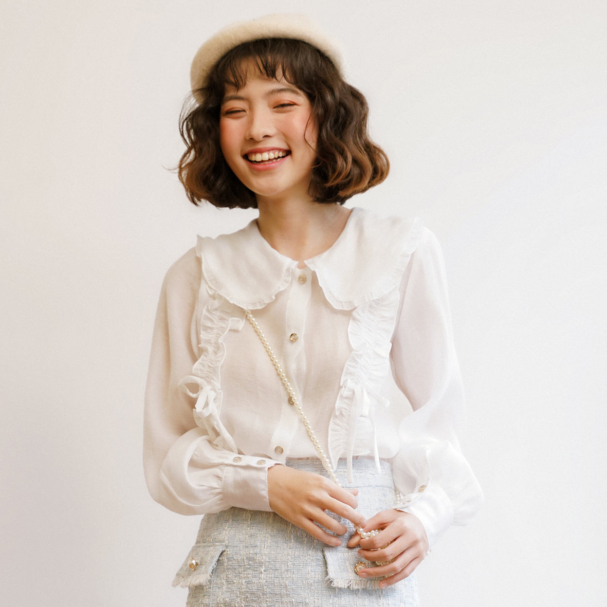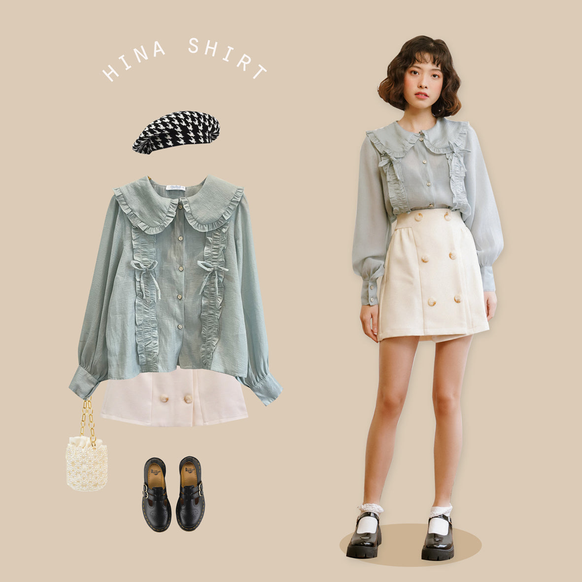The Hina Shirt is available in Asian sizes, so it's essential to refer to the Size Guide to select the perfect fit for you. The shirt length measures 55cm, providing a flattering cut that complements various body types. Please note that size L is available for pre-order only, which may require an additional 10 days for processing. This ensures that you receive the perfect size tailored to your needs.