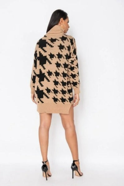 Discover the perfect blend of comfort and style with our Houndstooth Check Roll Neck Jumper Dress. This fashionable jumper dress is designed to keep you looking chic while providing the warmth and comfort you desire. The unique houndstooth check pattern adds a touch of sophistication, making it a versatile piece for various occasions. Whether you're heading out for brunch or a casual evening with friends, this dress is sure to turn heads.