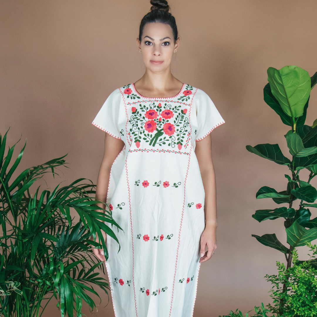 In summary, our Huipil is a beautiful blend of tradition, comfort, and style. With its stunning white fabric and pink floral design, it is a must-have for anyone looking to add a touch of elegance to their wardrobe. Experience the artistry of Mexican craftsmanship and make a statement with this unique piece.