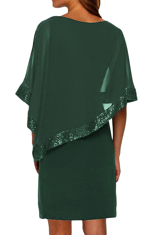 •Mesh poncho overlay with sequined trim
