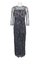 JS Collections Crew Neck Long Sleeve Embellished Ruched Waist Flutter Keyhole Back Mesh Dress; Fabric: Embellished in Mesh (100% Polyester) Lining (100% Polyester); Fabric Content: LINED