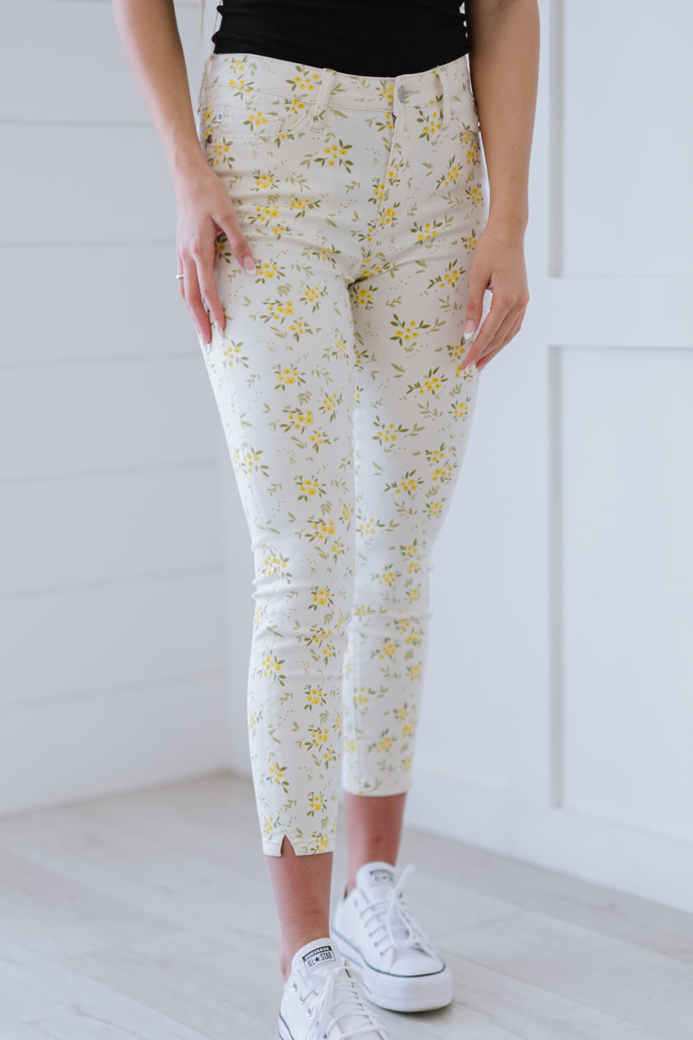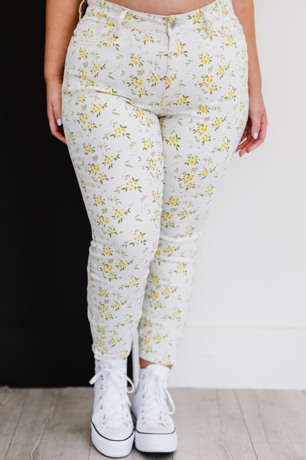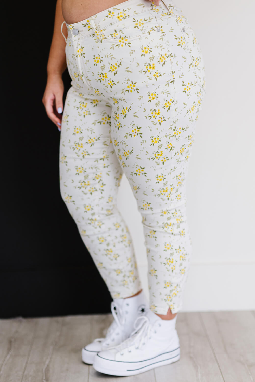 Get ready to brighten your wardrobe with the Judy Blue Golden Meadow Floral Skinny Jeans! These jeans are perfect for the spring season, combining comfort and style in one fabulous package. With their vibrant yellow floral pattern, they are designed to make you stand out while providing the flexibility you need for all-day wear. The highly stretchy fabric ensures a comfortable fit, allowing you to move freely without feeling restricted.
