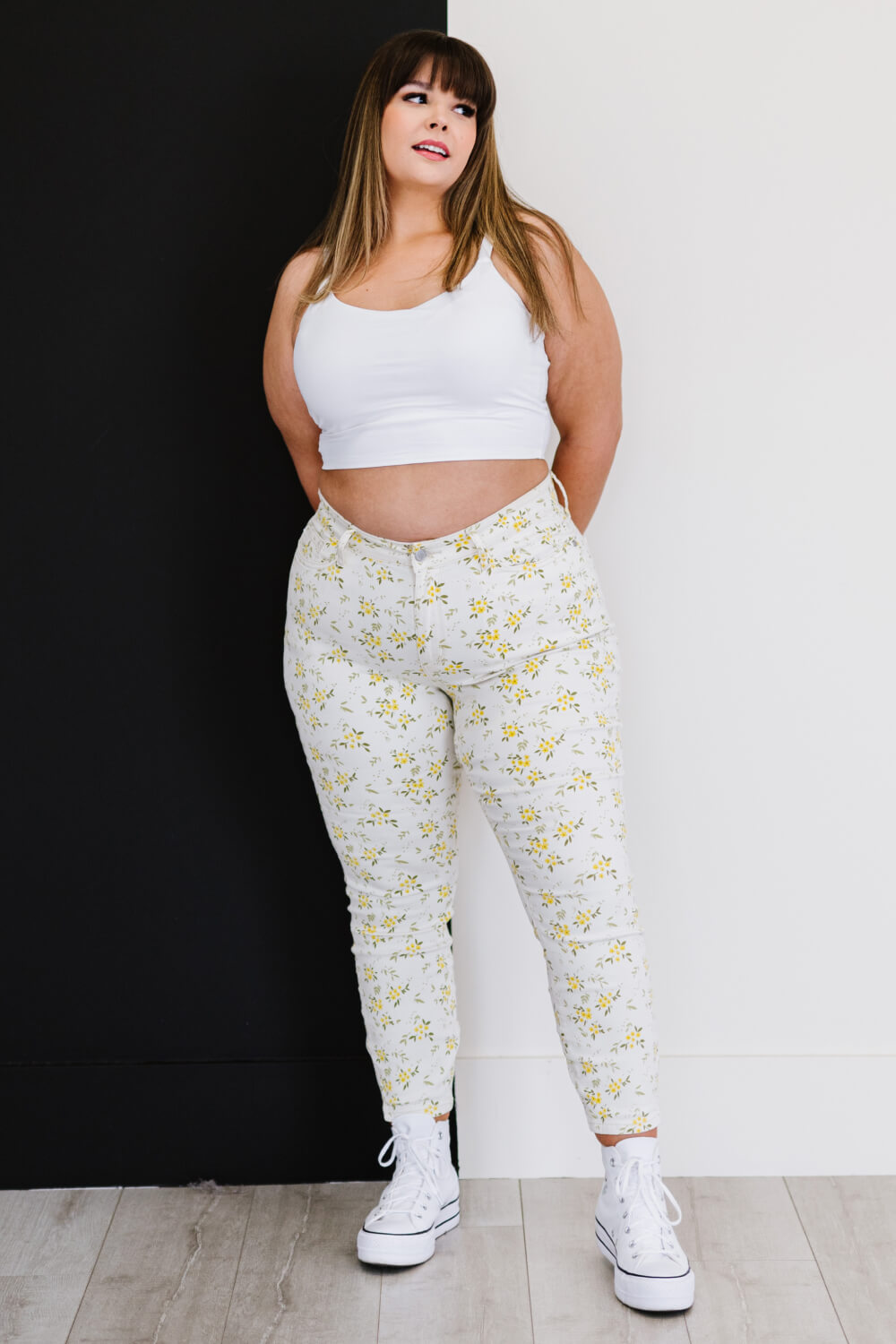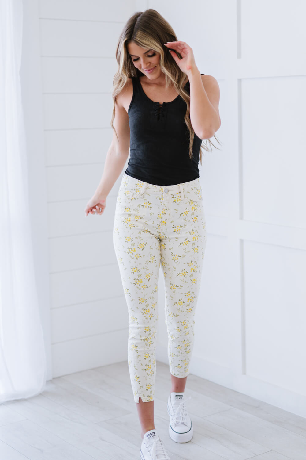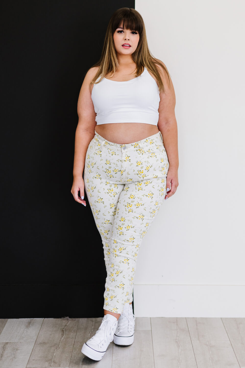 Get ready to brighten your wardrobe with the Judy Blue Golden Meadow Floral Skinny Jeans! These jeans are perfect for the spring season, combining comfort and style in one fabulous package. With their vibrant yellow floral pattern, they are designed to make you stand out while providing the flexibility you need for all-day wear. The highly stretchy fabric ensures a comfortable fit, allowing you to move freely without feeling restricted.