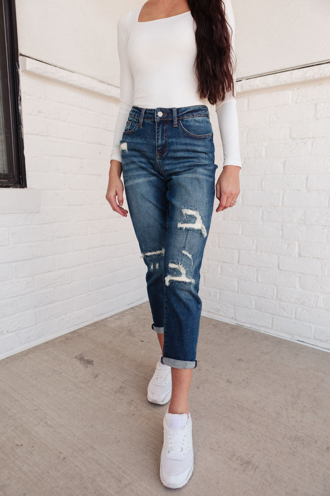 The boyfriend fit of these jeans offers a relaxed silhouette that is both flattering and comfortable. The mid-rise waist provides a perfect balance of coverage and style, allowing you to pair them effortlessly with various tops. Whether you're dressing up for a night out or keeping it casual for a day of errands, these jeans will elevate your outfit.