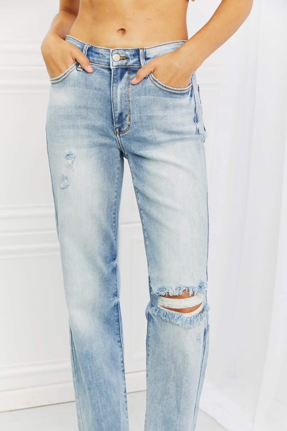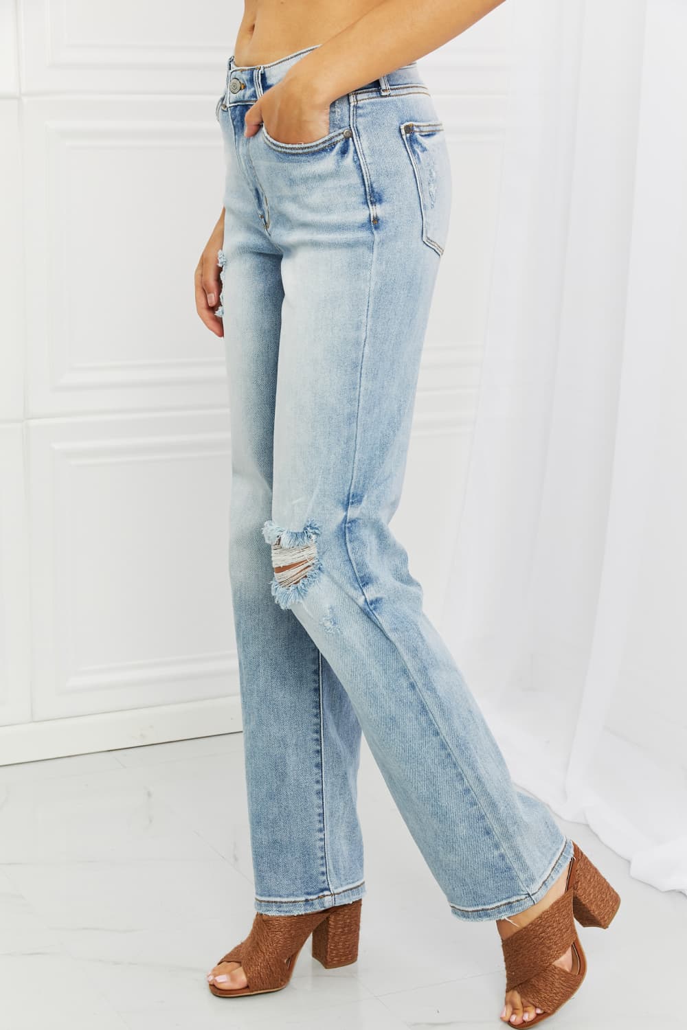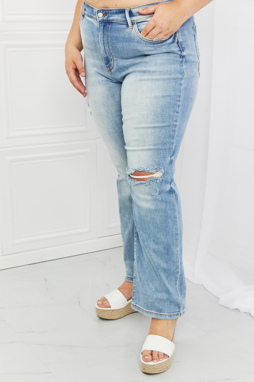 Dropship Judy Blue Natalie Full Size Distressed Straight Leg Jeans