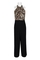 Julia Jordan Halter Neck Crossed Front Multi Print Bodice Keyhole Back Jersey Jumpsuit; Fabric: Jersey (95% Polyester 5% Spandex) Lining (100% Polyester); Fabric Content: LINED