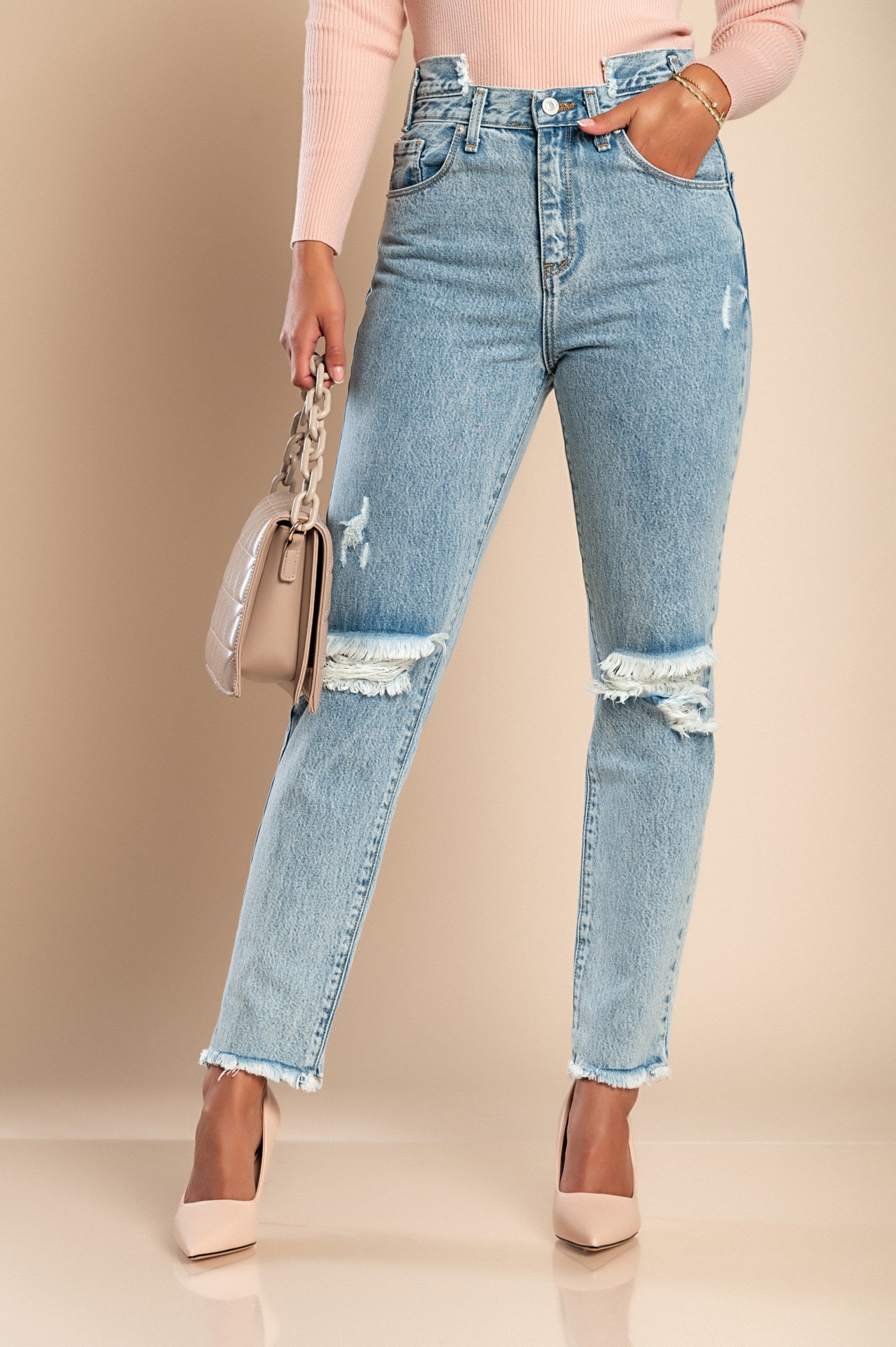 Kavbojke so zasnovane z visokim pasom, kar ne le da nudi dodatno podporo, ampak tudi ustvarja eleganten in moderen videz. Visok pas je priljubljen med modnimi navdušenci, saj omogoča enostavno kombiniranje z različnimi zgornjimi deli, od majic do bluz.