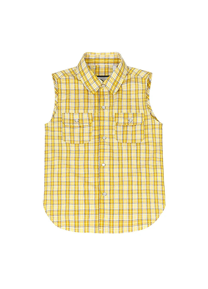 This vest features a classic sleeveless and lapel design that exudes a vintage western charm. The standout vintage western pearl button adds a unique touch, making it not just a piece of clothing but a statement of style. Your child will love wearing this vest, whether it's layered over a t-shirt or worn alone for a more casual look.