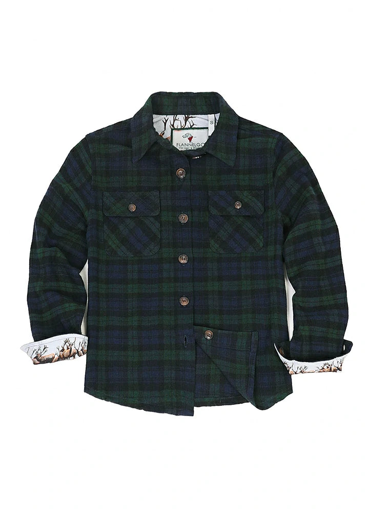 Introducing the Kids Wildlife Adventure Flannel Plaid Shirt, a perfect blend of comfort and style for your little explorers. Crafted from cozy pure cotton, this shirt is designed to keep your child warm and comfortable during their outdoor adventures. The double-brushed texture adds an extra layer of softness, making it ideal for all-day wear. Whether they're playing in the backyard or exploring the great outdoors, this flannel shirt is a must-have for any young adventurer.