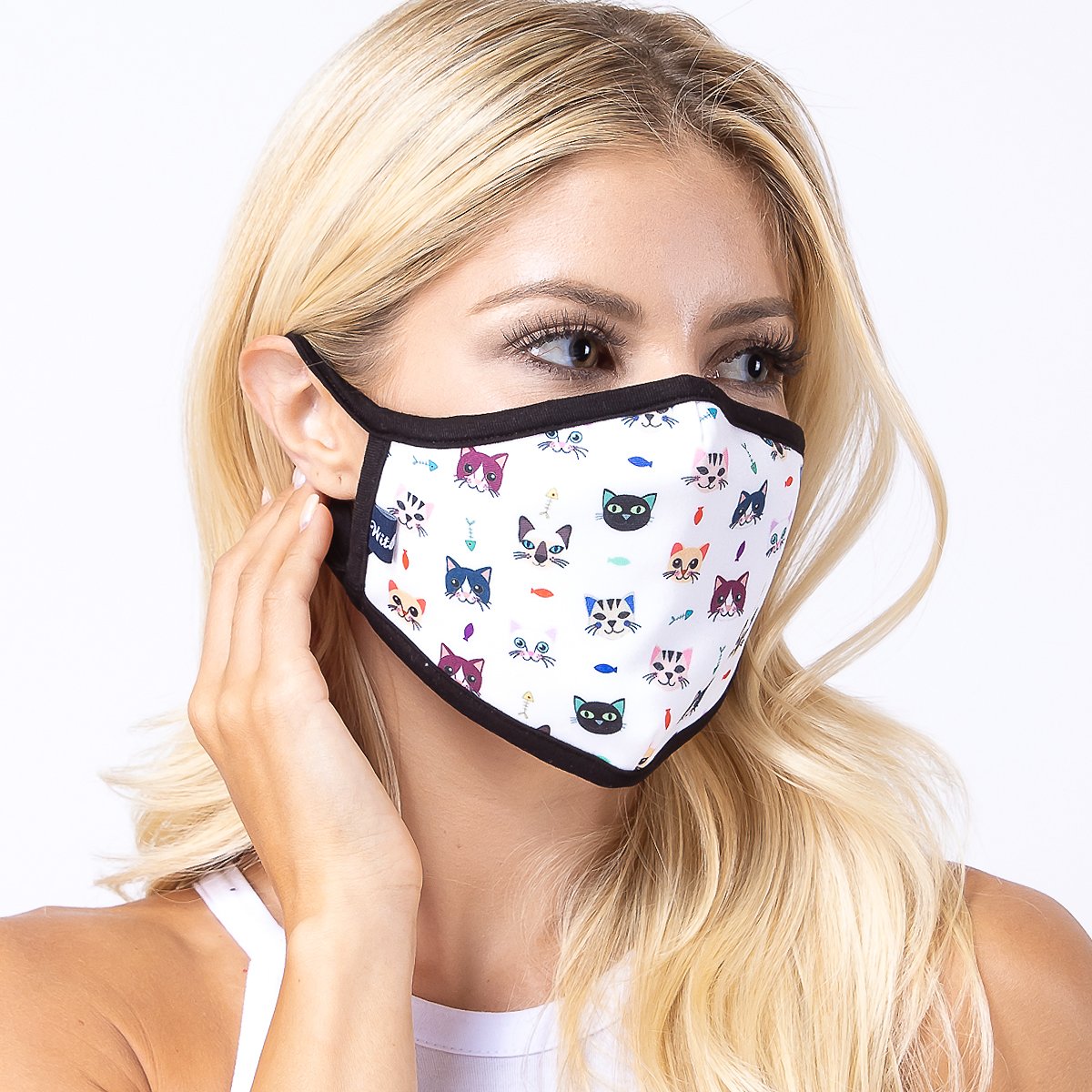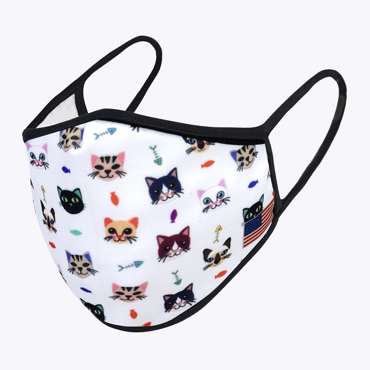 Kitty Cats 3-Layered Face Cover featuring a unique print design, made from polyester and cotton, suitable for unisex wear.