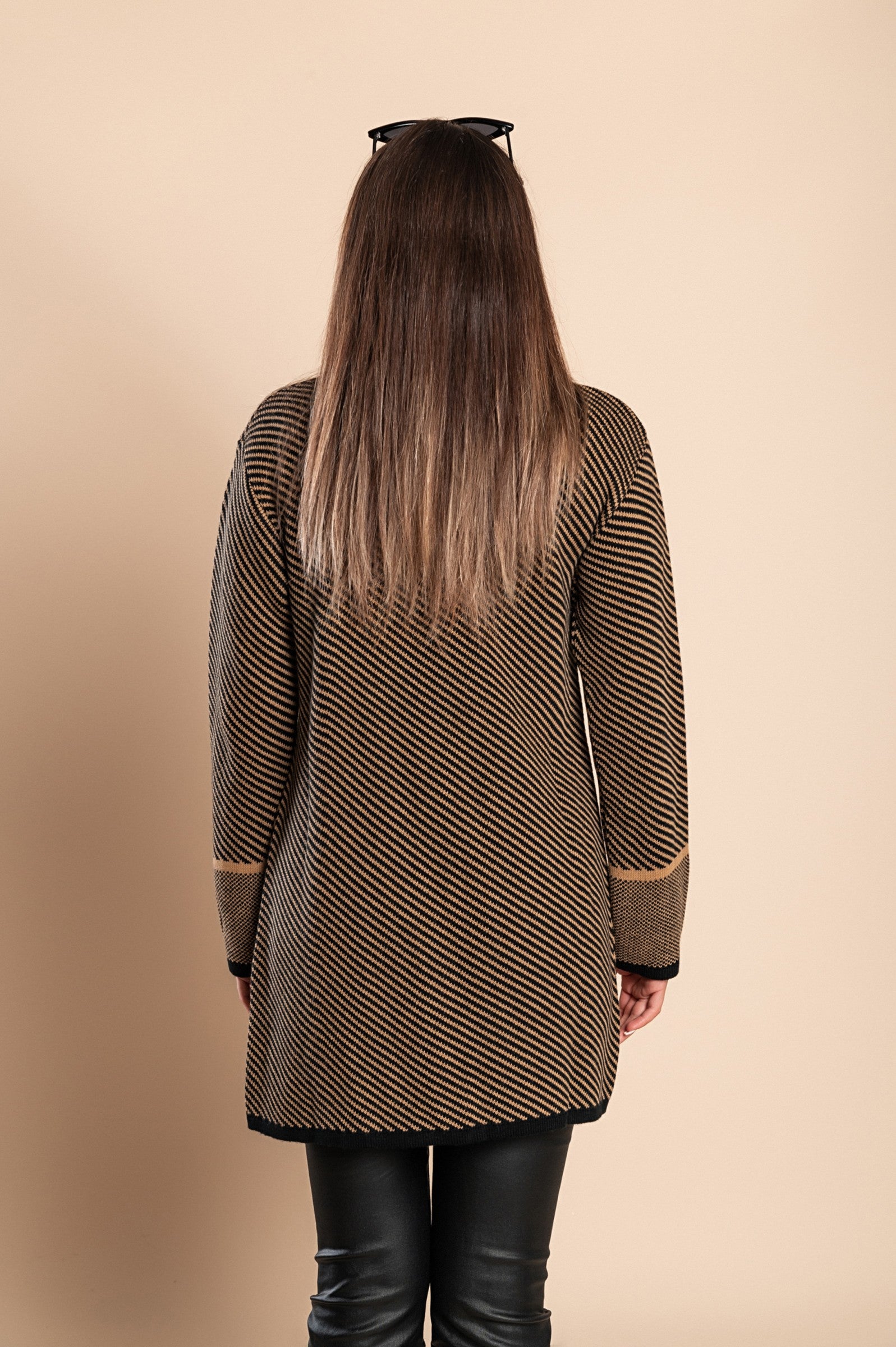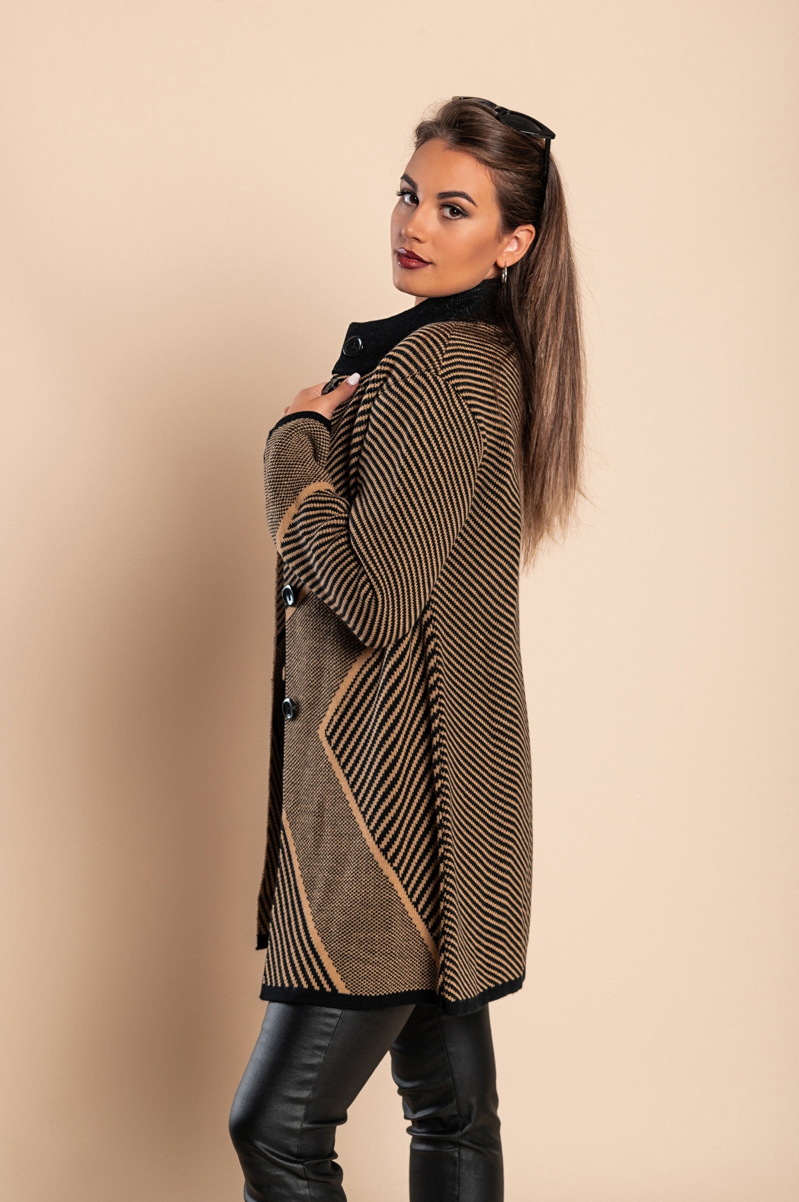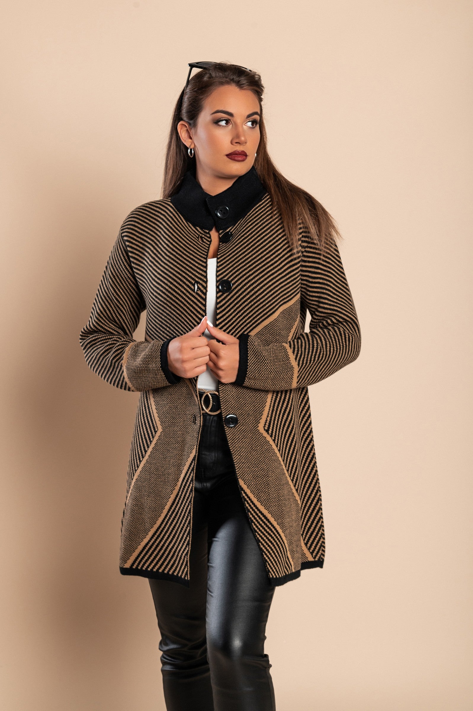 Introducing our stunning black knitted cardigan with a beautiful pattern, designed to elevate your wardrobe while providing exceptional comfort. This cardigan is crafted from a premium wool-acrylic blend, ensuring warmth and softness against your skin. Perfect for layering, it can be worn over a variety of outfits, making it a versatile addition to your collection.