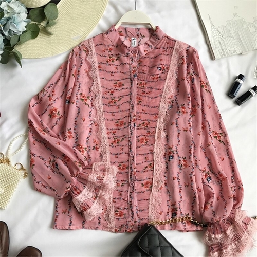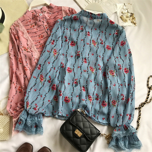 Dropship Korean Print Women Shirts Flare Long