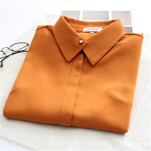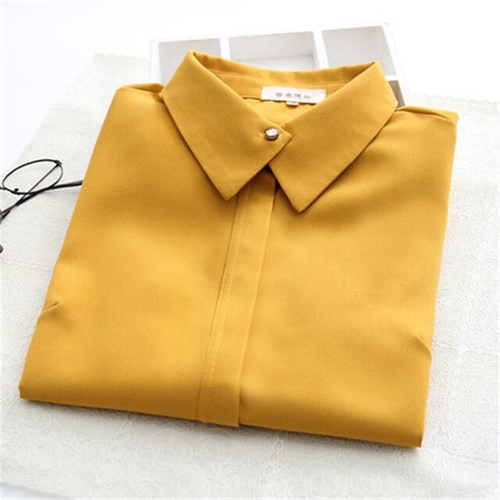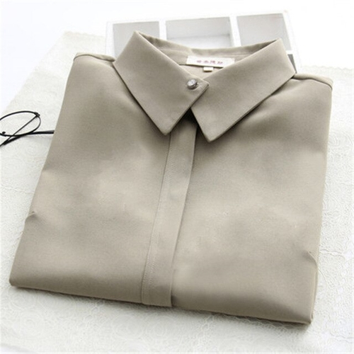 Gender: Women Material: Polyester Clothing Length: REGULAR Style: Casual Fabric Type: Chiffon Sleeve Length(cm): Full Decoration: Button Pattern Type: Solid Collar: Turn-down Collar Sleeve Style: REGULAR Model Number: 5XF021