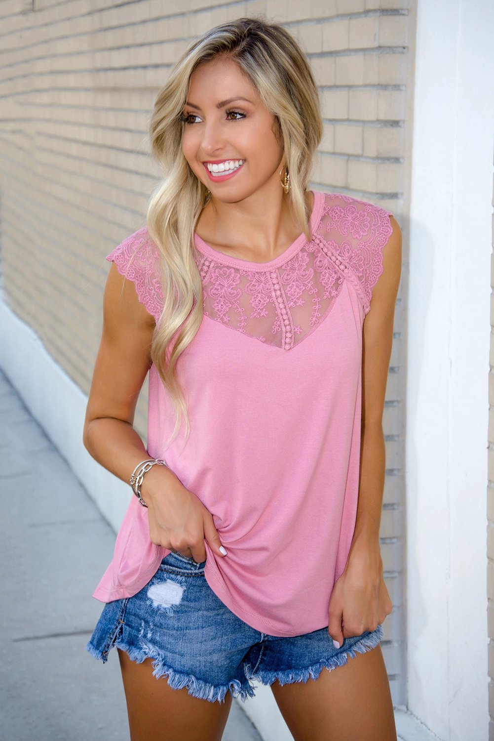 Not only does this tank top look fabulous, but it also offers a relaxed fit that ensures comfort throughout the day. Whether you're running errands or enjoying a night out, the Lace Cape Flowy Tank Top provides the perfect balance of style and ease. The round neck design adds to its versatility, allowing you to pair it effortlessly with your favorite bottoms.
