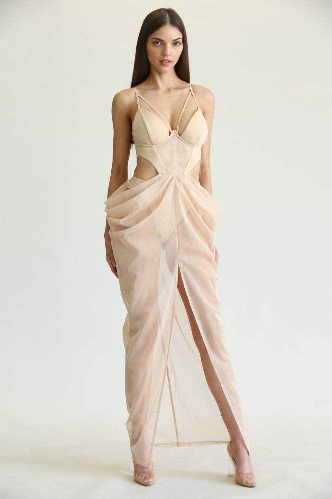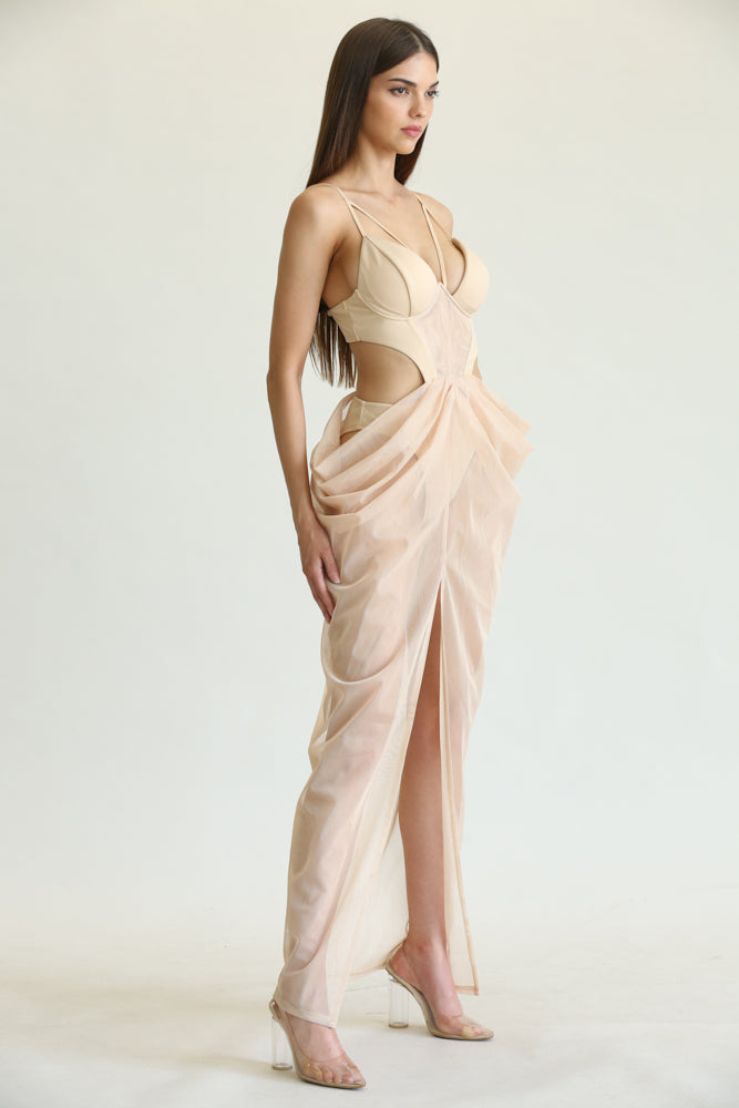One of the standout features of the Lainey Dress is its cutout front chest detail, which adds a touch of allure and sophistication. The mesh panel front enhances the overall design, providing a glimpse of skin while maintaining an air of elegance. This thoughtful design element makes the dress perfect for those who want to make a statement without compromising on style.